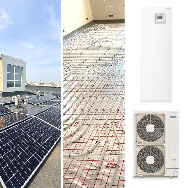 Sistem fotovoltaic 5kw monofazat/trifazat + pompa de caldura 11kw + incalzire in pardoseala 100mp